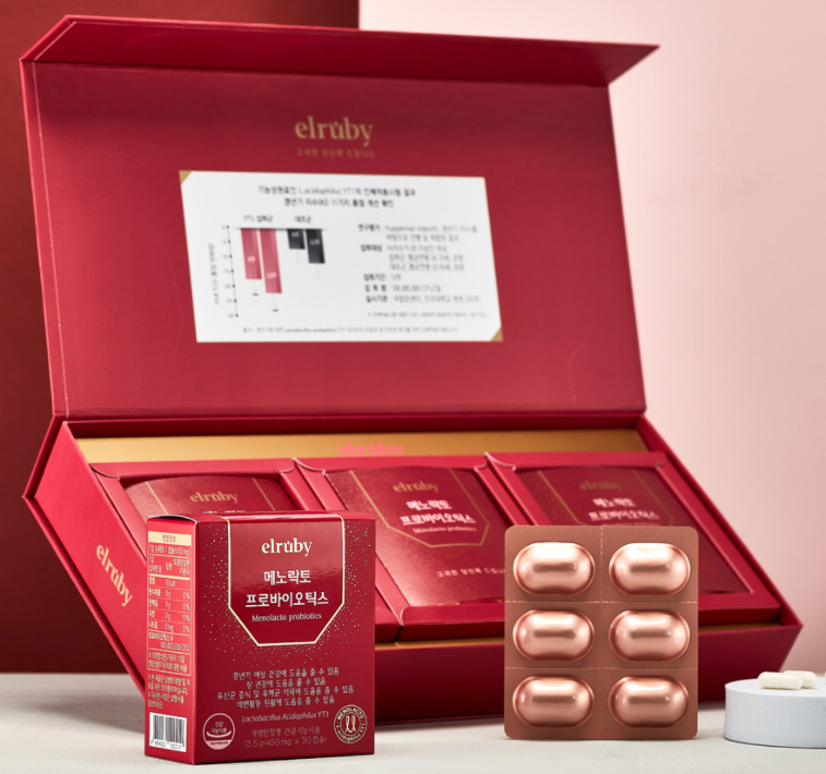 POINT 02 인체적용시험에 의한 과학적인 결과 확인 기능성원료 L. acidophilus YT1의 인체적용시험 결과갱년기 상태 지수 11의 총점 개선을 했습니다.안면홍조 / 손발저림 / 신경과민 / 심쿵/ 두통/ 우울증 / 피로/ 근관절통 / 개미환각 / 질건조 및 분비물이 11개 평가항목에서 유의성을 확인하였으며, 이를 통해 삶의 질 평가 개선을 확인하였습니다.POINT 03 독보적, 아무도 따라할 수 없는 메노락토바이로틱스의 특별함을 살아 당당히 장까지 갈 수 있도록 내열성, 내산성, 내담즙성 3중 코팅 기술 특허특허로 보호받고 있는 기술력 메노락트 프로바이오틱스는 갱년기 여성건강조성물 특허와 안정성 증진을 위한 코팅기술 특허를 가지고 있습니다.POINT04 심바이오틱스 포뮬러 프리바이오틱스는 여성의 몸에서 갱년기 유산균 YT1이 장내에서 잘 생성되고 정착할 수 있도록 먹이가 됩니다.POINT05 따라잡을 수 없는 기술력 걱정없는 식물성 캡슐/우피, 돼지껍데기가 아닌 식물성 캡슐로 걱정을 덜었습니다.장까지 살아가는 장용성 코팅, 살아있는 프로바이오틱스가 위산에 죽지 않고 장까지 살 수 있도록 장 도달률을 높인 장용성 코팅 제조ALU-ALU PTP 특수포장 빛과 습기, 열에 프로바이오틱스가 사멸하는 것을 줄이고 보존력을 높인 특수포장POINT 05 살아있는 갱년기 유산균을 위한 메노락트 냉장 포장 및 배송 시스템이 안전하게 배송될 수 있도록 특별한 배송 시스템으로 전달합니다.모든 멘노락트 프로바이오틱스가 철저한 냉장포장 및 냉장배송으로 관리되고 있습니다.집에서 드실때도 냉장고에 넣어두시고 드세요~!!이런 분들께 추천드립니다.여성호르몬 감소로 인한 갱년기, 폐경기 관리가 필요하신 분들.갱년기 건강을 미리 관리하고 싶으신 분.원활한 신체 생기 조절을 원하시는 분.여성으로서 건강한 젊음을 유지하고 싶은 모든 중년 여성.중년에 들어서 핵심 건강 문제 관리를 희망하시는 분.중년 여성 맞춤 선물을 찾으시는 분.건강한 사회생활, 행복한 부부생활을 원하는 모든 분.여성호르몬 감소로 인한 갱년기, 폐경기 관리가 필요하신 분들.갱년기 건강을 미리 관리하고 싶으신 분.원활한 신체 생기 조절을 원하시는 분.여성으로서 건강한 젊음을 유지하고 싶은 모든 중년 여성.중년에 들어서 핵심 건강 문제 관리를 희망하시는 분.중년 여성 맞춤 선물을 찾으시는 분.건강한 사회생활, 행복한 부부생활을 원하는 모든 분.지금 상담하시는 모든 분들께 특별 구성의 특별 할인 이벤트를 진행합니다.할인도 받고 콜라겐도 추가로 받고~ 건강한 하루하루 보내세요~!!CLICK ▼지금 상담하시는 모든 분들께 특별 구성의 특별 할인 이벤트를 진행합니다.할인도 받고 콜라겐도 추가로 받고~ 건강한 하루하루 보내세요~!!CLICK ▼