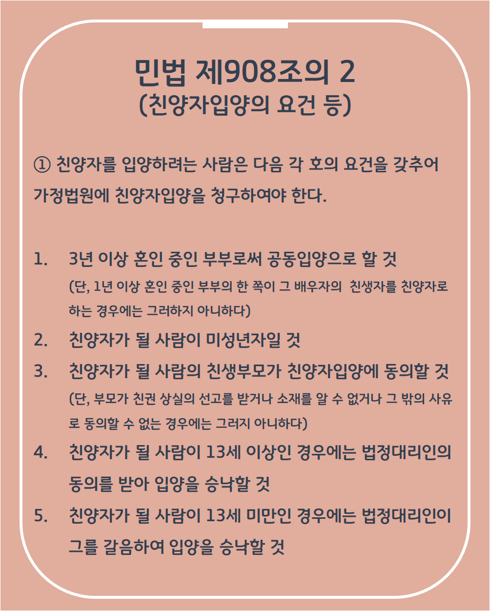합의 입양의 입양 절차는 재혼 한 배우자의 결혼 한 배우자를 양심적 인 사람으로 채택하고 ‘진정한’가족이되기를 희망하면 기각 될 수 있습니다. blog.naver.com