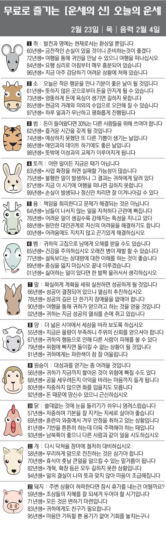 쥐띠 오늘의 운세 (2023년 4월 18일)