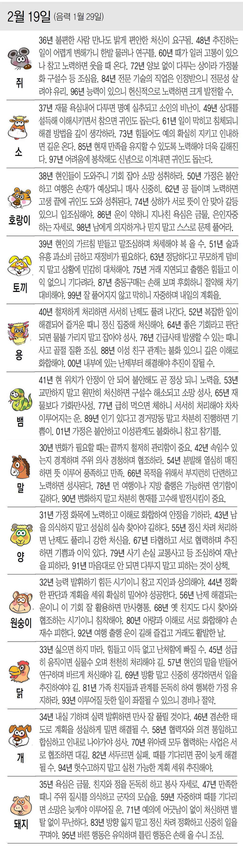 1949년생 : 호랑이 꼬리를 무는 것 같아서 편안함 속에 불안이 있다.
