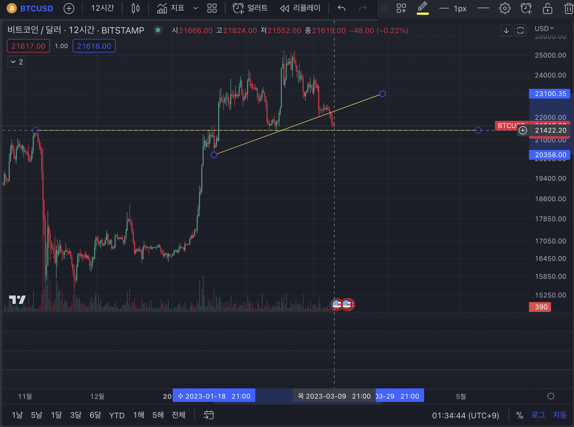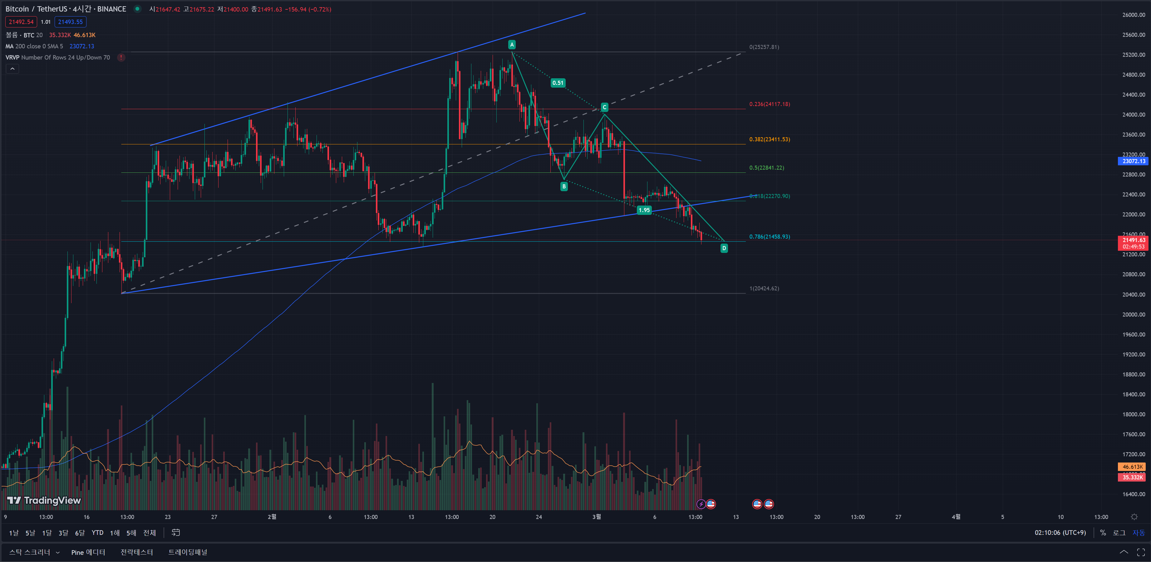 현재 비트코인은 21.5K입니다. 지난 브리핑에서 채널을 빠져나갈 때 하체는 21,400에서 21,500까지 열려있다고 말씀드렸는데 오늘 도달했습니다. 모두들 좋은 답변 부탁드립니다.