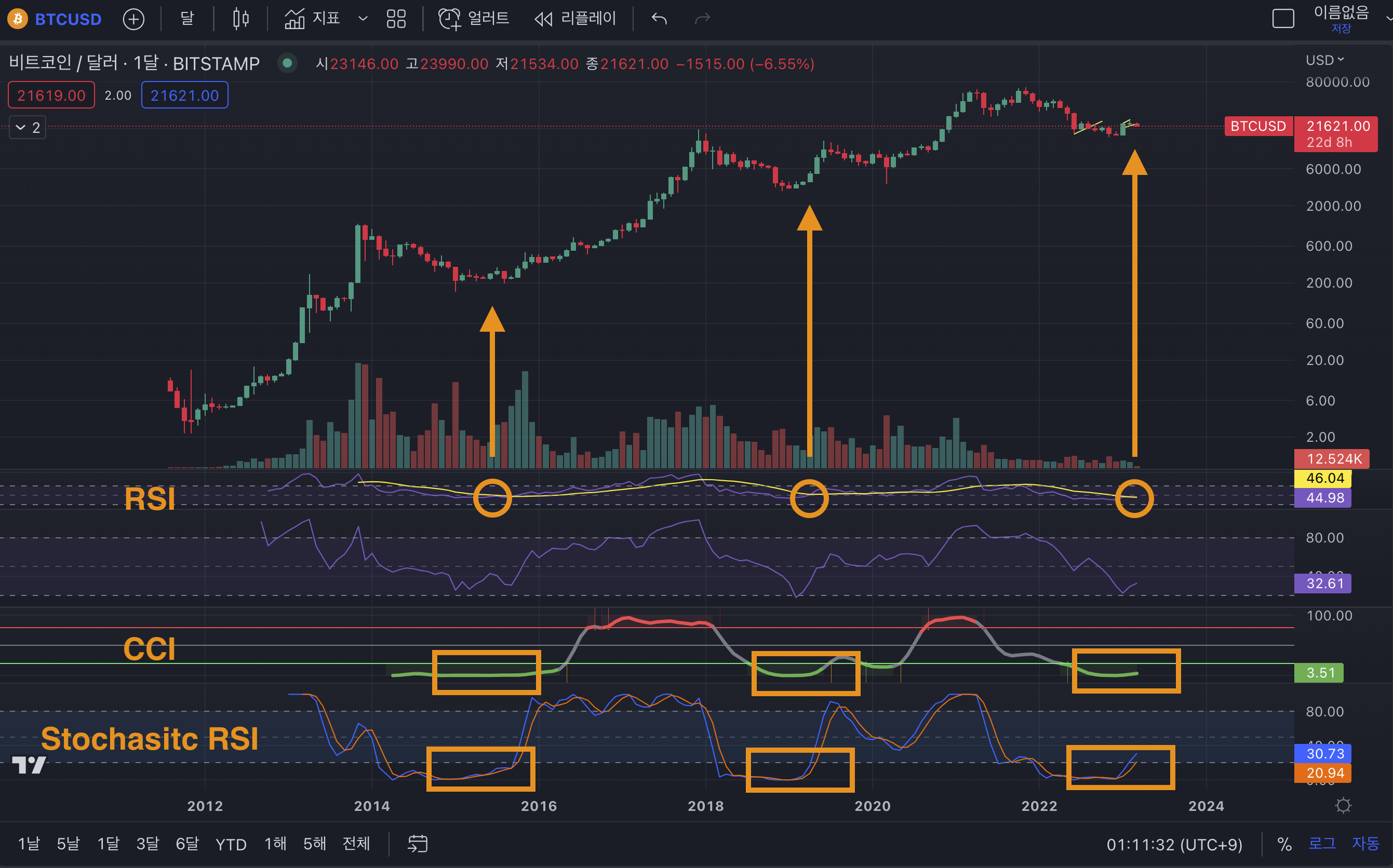 3⃣ 추세를 이용한 상대강도지수는 과매도권을 벗어나 기울기의 상승추세, 즉 상승이 시작되었다고 결론 내릴 수 있습니다.