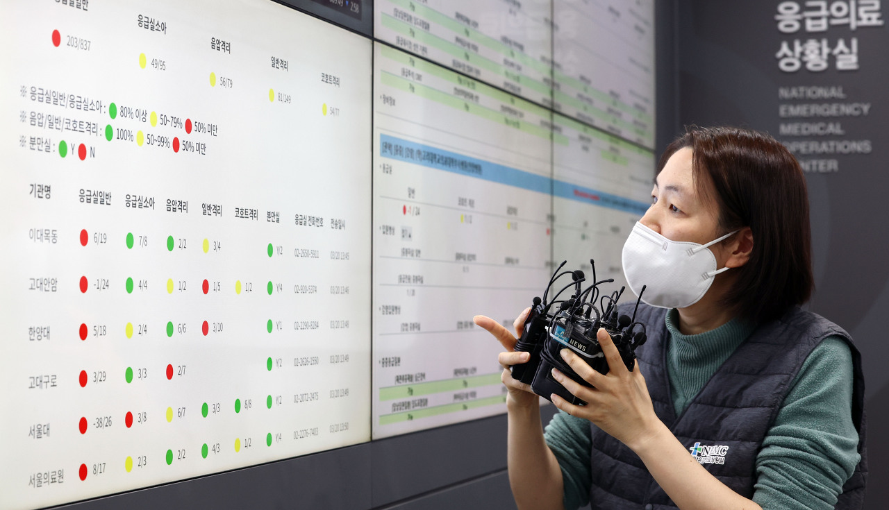 차명일 중앙응급의료상황실장이 4차 응급의사 기본계획서에서 중앙응급의료상황실 제도 등에 대해 설명 중구 국립중앙의료원 국가응급의료체계 개선 목표 및 과제 , 20일 오후 서울 / 연합뉴스