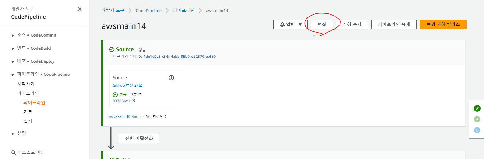 환경 변수는 yml 파일에 ${cddepipeline.(Key)} 형식으로 지정해야만 읽을 수 있습니다.