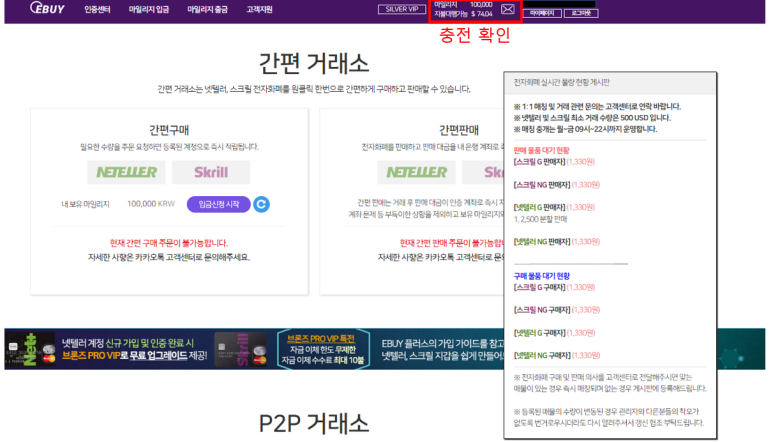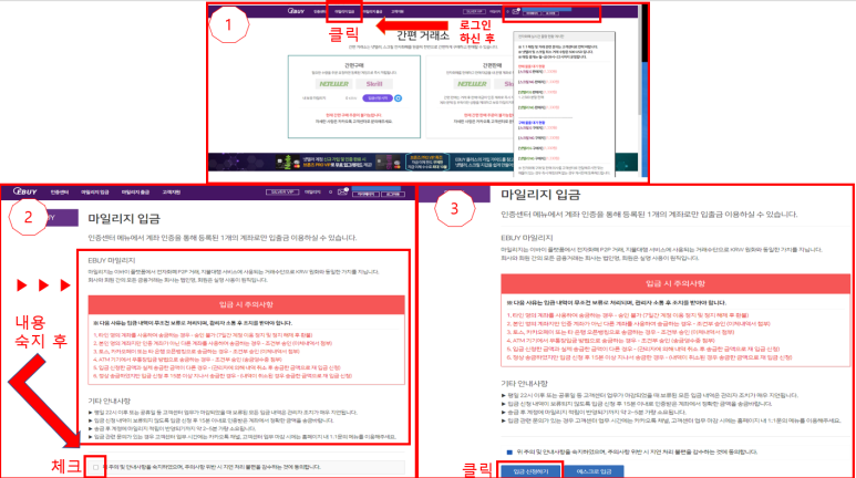 3) 입금 완료 후 홈페이지에서 마일리지 잔액 확인